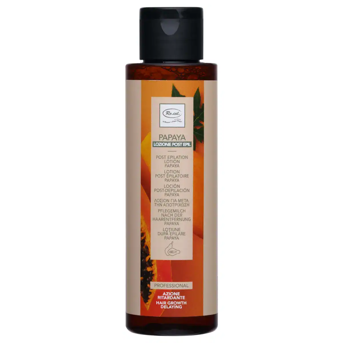 Lotiunea dupa epilare Roial cu extract de papaya este un produs profesional conceput pentru a calma si hidrata pielea dupa epilare. Extractul de papaya ajuta la reducerea inflamatiilor si la prevenirea iritatiilor, oferind pielii un aspect neted si catifelat.