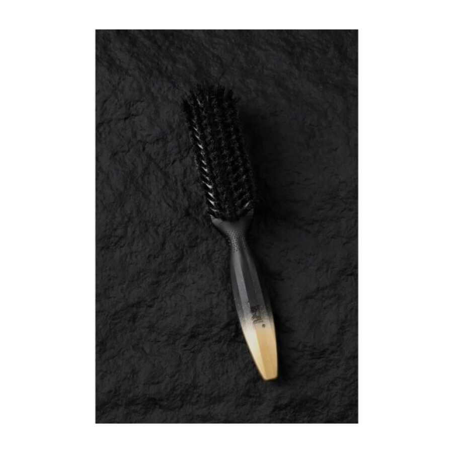 Mânerul curbat din plastic, cu o lungime totală de 16.5 cm, asigură o manevrare precisă. Produsul este optimizat pentru curățarea scalpului, perierea structurii bărbii și întreținerea mecanică a lamelor mașinilor de tuns.