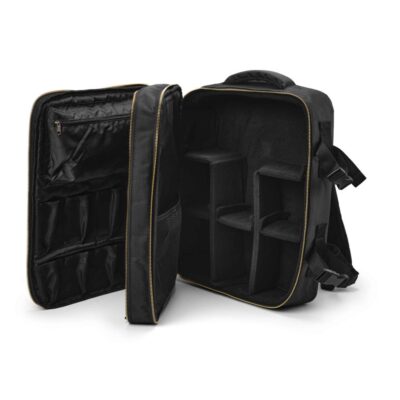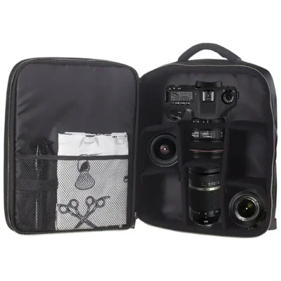 Designul inteligent pune accent pe siguranță și organizare. Compartimentul principal dispune de suporturi speciale pentru mașinile de tuns, gândite să protejeze lamele și motoarele în cazul unor șocuri sau căderi accidentale. De asemenea, rucsacul este adaptat nevoilor moderne, incluzând spații customizabile pentru camere foto (DSLR/Mirrorless), obiective și un suport lateral pentru trepied.