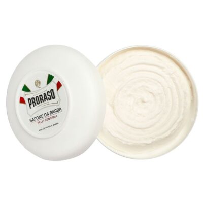Cunostiintele fabricarii produselor de ingrijire masculina adunate in zeci de ani de experienta se intalnesc in renumitul Sapun de barbierit Proraso Sensitive. Creat prin saponificare la cald si maturat pentru 10 zile in incinte cu temperatura controlata pentru a se solidifica, sapunul concentrat este perfect pentru peria de ras. Combina efectele ceaiului verde si ale ovazului pentru a oferi o senzatie placuta de linistire si pentru a reda proprietatile pielii.