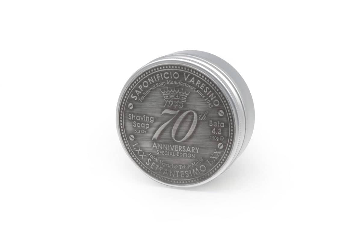 Creat pentru a celebra 70 de ani de excelență (1945-2015), Săpunul de Ras Settantesimo Anniversario reprezintă vârful de lance al gamei Saponificio Varesino. Disponibil acum în cea mai avansată formulare a brandului, Beta 4.3, acest produs oferă o experiență de bărbierit mecanic inegalabilă. Îmbogățit cu Unt de Illipe și Ulei de Macadamia, săpunul vine ambalat într-un bol robust de aluminiu cu capac înfiletabil.