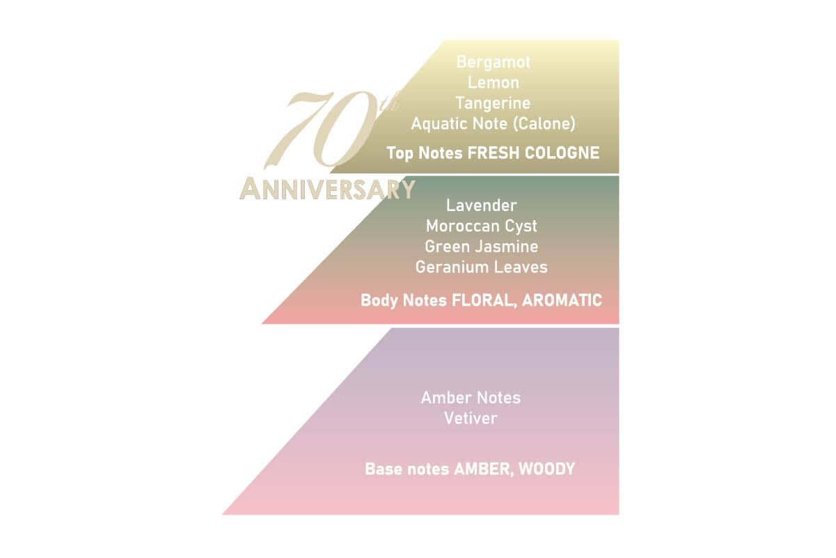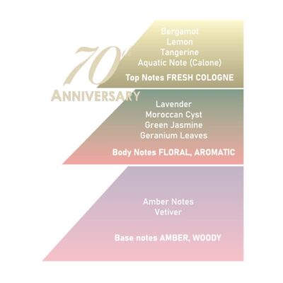 Parfumul “70th Anniversary” este o reinterpretare sofisticată a clasicei ape de colonie. Este o aromă proaspătă, creativă și evocatoare: