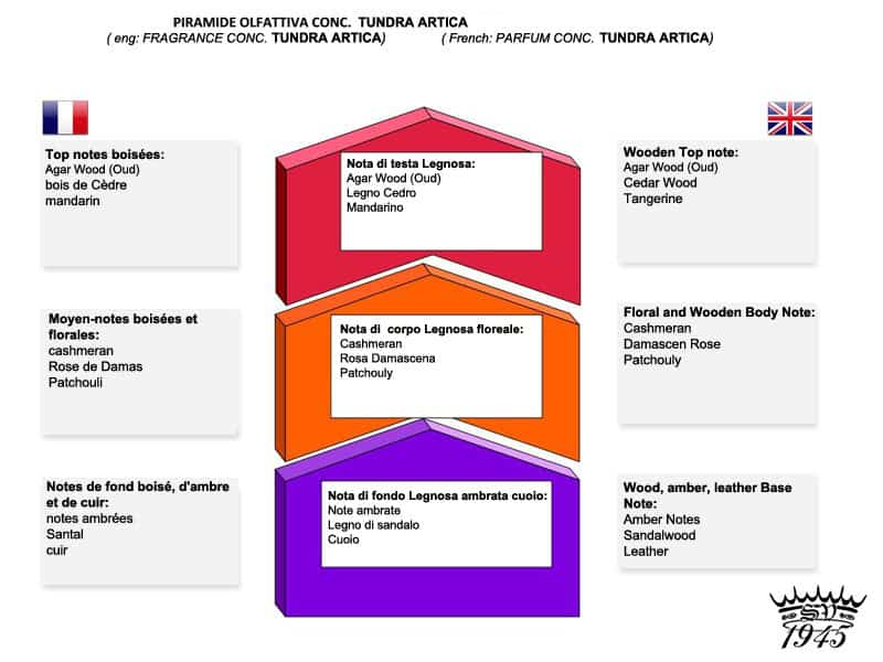 Spre deosebire de parfumurile orientale grele, Tundra Artica propune o interpretare inedită a prețiosului Lemn de Agar (Oud). Aroma a fost armonizată pentru a evoca spațiile deschise și proaspete ale tundrei, având o percepție marcat lemnoasă, de arbuști sălbatici. Este un parfum masculin, curat și sofisticat.